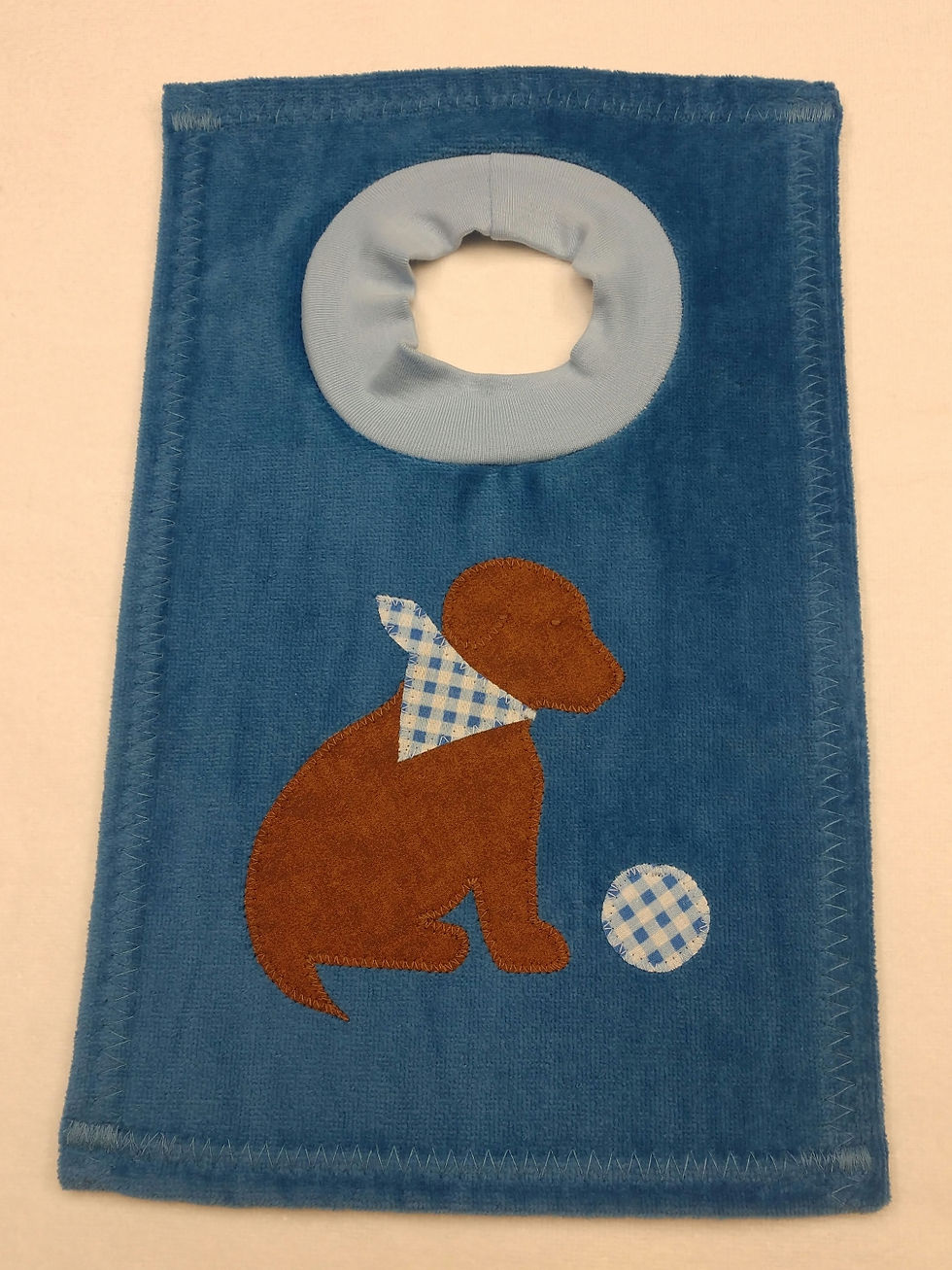 Our infant bib is a generous 16" by 10" with a pullover ribbed neck design. Even the most determined baby won't be able to yank it off! They are 100% cotton, durable, and a must have for every baby.
